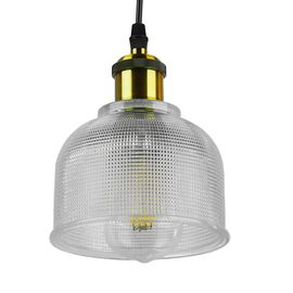 GloboStar® SEGRETO 01447 Vintage Κρεμαστό Φωτιστικό Οροφής Μονόφωτο Γυάλινο Διάφανο Καμπάνα με Χρυσό Ντουί Φ14 x 18cm