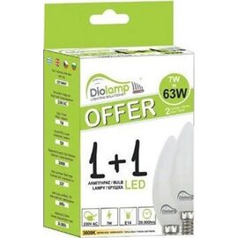 Λαμπτήρας Led E14 7w 1+1 Pack 550lm 6000K Cool White 200° 37*100mm Diolamp C377CWP