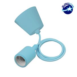 Γαλάζιο Κρεμαστό Φωτιστικό Οροφής Σιλικόνης με Υφασμάτινο Καλώδιο 1 Μέτρο E27 GloboStar Light Blue 91010