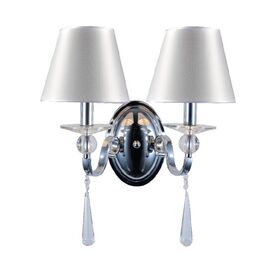 Απλίκα Δίφωτη Λευκό Μέταλλο, Δάκρυ Λευκό Φυσητό Γυαλί & Λευκό Αμπαζούρ Inlight 43333-2