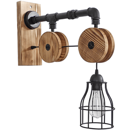 Απλίκα Μονόφωτη Διπλή Τροχαλία Ξύλο Μέταλλο Πλέγμα Heronia Lighting PP-300AP-B-FUN-10 31-0913