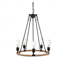 Φωτιστικό Vintage Πολυέλαιος Πεντάφωτος Μέταλλο Μαύρο Ματ / Σχοινί ACA 563505PRT