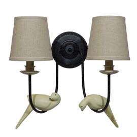 GloboStar® DOVE 01086 Vintage Φωτιστικό Τοίχου Απλίκα Δίφωτο Μαύρο Μεταλλικό με Μπεζ Υφασμάτινο Καπέλο Μ27 x Π43 x Υ30cm