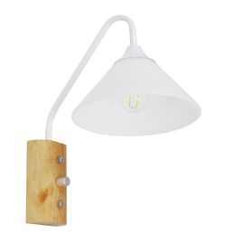 GloboStar® GRANT 00903 Μοντέρνο Φωτιστικό Τοίχου Απλίκα Μονόφωτο Λευκό με Ξύλινο Βραχίονα Μεταλλικό Φ15 x Y12cm