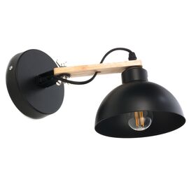 GloboStar® LYDFORD 01432 Μοντέρνο Φωτιστικό Τοίχου Απλίκα Μονόφωτο Μαύρο με Μπέζ Ξύλο Μεταλλικό Φ20 x Y36cm