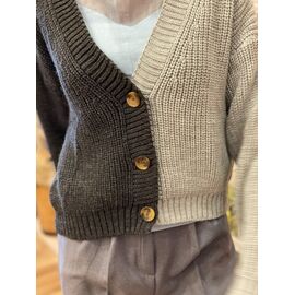 Κοντό δίχρωμο πλεκτό με πλέξη καλαμπόκι σχέδιο βέ με κουμπιά μπροστά. Σύνθεση:100%ACRYLIC.