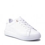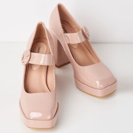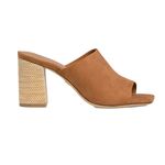 Πέδιλο από συνθετικό δέρμα με γεωμετρικό τακούνι και τετραγωνισμένο μπροστά μέρος. Πολλαπλές φάσες συγκράτησης με χιαστί σχέδιο στο κουντεπιέ. Λεπτή φάσα στη φτέρνα με θηλιά. Δέσιμο με μεταλλική αγκράφα στον αστράγγαλο. Ύψος: 11 εκ.
