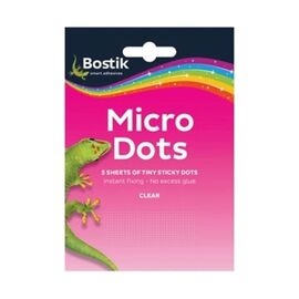 Τα Bostik Micro Dots είναι χιλιάδες μικροσκοπικές κουκίδες διάφανου συγκολλητικού διπλής όψης που μεταφέρονται από το φύλλο, μετατρέποντας οποιαδήποτε επιφάνεια σε αυτοκόλλητο. Διάφανες. 5 φύλλα με μικροσκοπικές κουκίδες. Άμεση συγκόλληση. Διπλής όψης. Για 1001 χρήσεις. Χώρα...