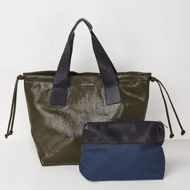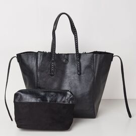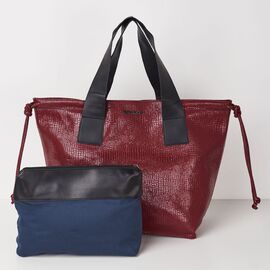 Τσάντα shopper σε μεγάλο μέγεθος με ανάγλυφη υφή φιδιού. Πλατιοί ιμάντες σε χρωματική αντίθεση. Ενιαίος εσωτερικός χώρος. Κλείνει με φερμουάρ και πλαϊνά κορδόνια που σουρώνουν. Διαθέτει έξτρα νεσεσέρ. ΠΧΒΧΥ : 53X19X36.