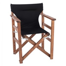 Πολυθρόνα σκηνοθέτη ΝΑΞΟΣ πτυσσόμενη, εμποτισμού. Κατασκευασμένη από ενισχυμένο σκελετό 100% μασίφ ξύλο φουρνιστής οξιάς σε καρυδί απόχρωση, με ύφασμα καραβόπανο σε μαύρο χρώμα. Συμπεριλαμβάνονται πλαστικά βεργάκια για την στερέωση των πανιών. Χρώμα σκελετού: Καρυδί Χρώμα υφάσματος: Μαύρο...