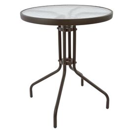 Τραπέζι εξωτερικού χώρου μεταλλικό σε καφέ απόχρωση με γυαλί ασφαλείας στην επιφάνειά του. Διαστάσεις: Φ60x70 εκ. Χρώμα μετάλλου: Καφέ Το γυαλί έχει νερά κυματιστά. Ονομασία: Lima Το προϊόν διατίθεται σε πακέτο αμοντάριστο υπάρχουν οδηγίες συναρμολόγησης στην συσκευασία.