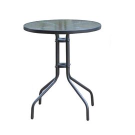 Τραπέζι εξωτερικού χώρου μεταλλικό σε γκρι απόχρωση με γυαλί ασφαλείας στην επιφάνειά του. Διαστάσεις: Φ60x68 εκ. Απόσταση ποδιών: 40x40 εκ. Χρώμα μετάλλου: Γκρι Το γυαλί έχει νερά κυματιστά. Ονομασία: Lima Το προϊόν διατίθεται σε πακέτο αμοντάριστο υπάρχουν οδηγίες συναρμολόγησης στην συσκευασία.
