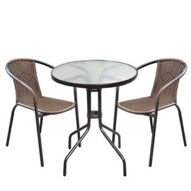 BALENO Set Κήπου - Βεράντας : Τραπέζι + 2 Πολυθρόνες Μέταλλο Καφέ - Wicker Brown-Ε240-Μέταλλο/Wicker-1τμχ- Table:Φ60x70 Chair:53x58x77cm