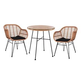 ΤΟ ΣΕΤ ΠΕΡΙΛΑΜΒΑΝΕΙ Ένα τραπέζι κατασκευασμένο από μεταλλικό σκελετό σε μαύρη απόχρωση και επιφάνεια επενδυμένη με πλεκτό wicker σε μπεζ απόχρωση. Επίσης διαθέτει γυάλινη επιφάνεια. Διαστάσεις: Φ70 εκ. Ύψος τραπεζιού: 74 εκ. Διαστάσεις ποδιών: 51x47 εκ. Δύο πολυθρόνες κατασκευασμένες από...