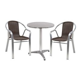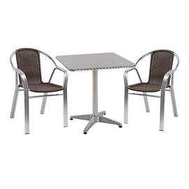 ΤΟ ΣΕΤ ΠΕΡΙΛΑΜΒΑΝΕΙ Ένα τραπέζι τραπεζαρίας, κατασκευασμένο από αλουμίνιο σε σε ανθρακί απόχρωση. , το καθιστά κατάλληλο για χρήση σε εσωτερικούς αλλά και εξωτερικούς χώρους. Διαστάσεις: 80x80x75,5Υ εκ. Δύο πολυθρόνες με μοντέρνο σχεδιασμό, κατασκευασμένες από σκελετό αλουμινίου σε ανθρακί χρώμα...