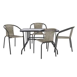 ΤΟ ΣΕΤ ΠΕΡΙΛΑΜΒΑΝΕΙ Ένα τραπέζι μεταλλικό εξωτερικού χώρου σε γκρι απόχρωση, με ενσωματωμένο τζάμι ασφαλείας (secure). Διαστάσεις: 140x80x72 εκ. Τέσσερις πολυθρόνες εξωτερικού χώρου Endika σε γκρι απόχρωση. Κατασκευασμένες από μεταλλικό σκελετό με μεταλλικούς ιμάντες στήριξης για τα μαξιλάρια....