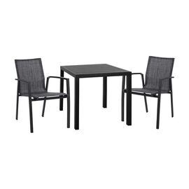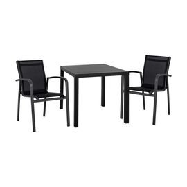 ΤΟ ΣΕΤ ΠΕΡΙΛΑΜΒΑΝΕΙ Ένα τραπέζι τραπεζαρίας, κατασκευασμένο από αλουμίνιο σε μαύρη απόχρωση, το καθιστά κατάλληλο για χρήση σε εσωτερικούς αλλά και εξωτερικούς χώρους. Διαστάσεις: 80x80x75,5Υ εκ. Δύο πολυθρόνες με μοντέρνο σχεδιασμό, κατασκευασμένες από σκελετό αλουμινίου σε ανθρακί χρώμα &...