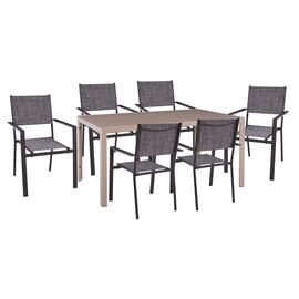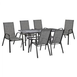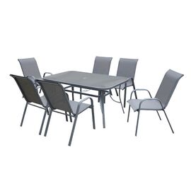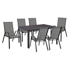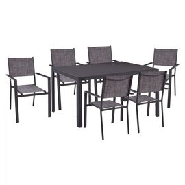 RIO Set Τραπεζαρία Μέταλλο Βαφή Ανθρακί, Textilene Γκρι : Τραπέζι+6 Πολυθρόνες-Ε250,7-Μέταλλο/Textilene-1τμχ- Table:140x80x71 Armch:55x75x95
