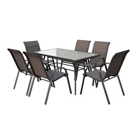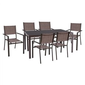 RIO Set Τραπεζαρία Βεράντας - Κήπου : Τραπέζι + 6 Πολυθρόνες Μέταλλο Καφέ, Textilene Καφέ-Ε2405,S-Μέταλλο/Textilene-1τμχ- Table:140x80x70 Armch:55x72x89
