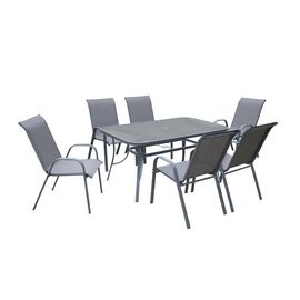 RIO Set Τραπεζαρία Κήπου Steel Ανθρακί -Textilene Γκρι : Τραπέζι+ 6 Πολυθρόνες-Ε250-Μέταλλο/Textilene-1τμχ- Table:150x90x71 Armch:55x75x95