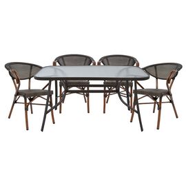 ΣΕΤ ΤΡΑΠΕΖΑΡΙΑ 5ΤΜΧ 140X80 & 4 ΠΟΛΥΘΡΟΝΕΣ BAMBOO LOOK ΚΑΦΕ