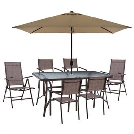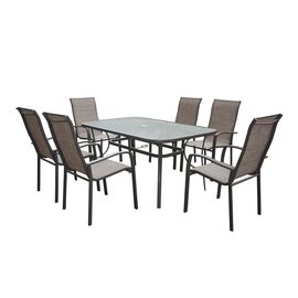 VERONA Set Τραπεζαρία Κήπου : Μέταλλο,Textilene Καφέ, Γυαλί :Τραπέζι 160x96 + 6 Πολυθρόνες-Ε272,S-Μέταλλο/Textilene-1τμχ- Table160x96x71Armchair56x70x96