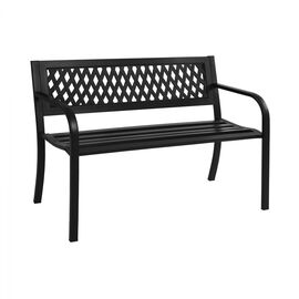 Μεταλλικό παγκάκι σε μαύρη απόχρωση. Στιβαρό και μεγάλης αντοχής παγκάκι ιδανικό για εξωτερικούς χώρους. Διαστάσεις: 102x52x88 εκ. Διαστάσεις καθίσματος: 92x40 εκ. Διαστάσεις πλάτης: 90x43 εκ. Ύψος ποδιών: 46 εκ. Ύψος καθίσματος: 48 εκ. Ύψος μπράτσων: 65 εκ. Απόσταση ποδιών: 87x45 εκ.