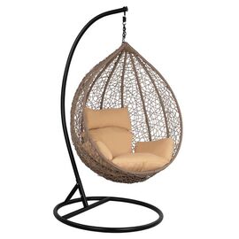 Κρεμαστή πολυθρόνα φωλιά σε σχήμα σταγόνας, με ρυθμιζόμενο ύψος καθίσματος. Ιδανική λύση για χαλάρωση και ξεκούραση στην βεράντα, τον κήπο ή το σαλόνι. Μεταλλικός μαύρος σκελετός και βάση με πλέξη Wicker σε φυσική απόχρωση. Το υλικό wicker rattan έχει μεγάλη ανθεκτικότητα σε υψηλές θερμοκρασίες...