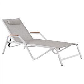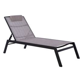 Επαγγελματική ξαπλώστρα από σκελετό αλουμινίου και textline σε γκρι απόχρωση με προσκέφαλο. Διαστάσεις: 195x60-69,5x30 εκ. Ύψος μπράτσου: 47,5 εκ. Max ύψος πλάτης: 98 εκ.