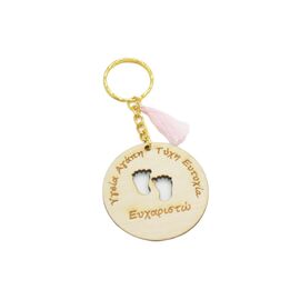 Ξύλινο Μπρελόκ πατουσάκια με φούντα και ευχές. Διάσταση 11,5 εκ με τον κρίκο. Η φούντα μπορεί να γίνει και σιέλ για αγοράκι.