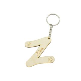 Ξύλινο Μπρελόκ με το μονόγραμμα και το όνομα του παιδιού. Διάσταση 12 εκ και μονόγραμμα 6 εκ.