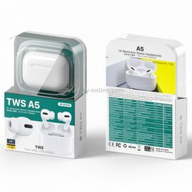 REMAX TWS A5 earphones με θήκη φόρτισης , true wireless, λευκά