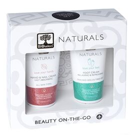 Bioselect naturals gift box αποτελείται από μια κρέμα χεριών και νυχιών και μια κρέμα ποδιών.