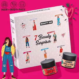 Beauty jar “7 BEAUTY SURPRISES” gift box το απόλυτο Gift Box για να γνωρίσετε την Beauty Jar ή να το κάνετε δώρο στη φίλη ή αγαπημένη σας! Το κουτί “7 Beauty Surprises” περιλαμβάνει 7 προϊόντα περιποίησης, που θα σας κάνουν να διασκεδάσετε αλλά και να αγαπήσετε την εταιρεία Beauty Jar!