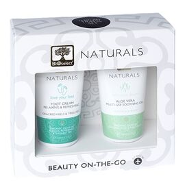 Bioselect naturals gift box 5 αποτελείται από μια κρέμα ποδιών και ένα δροσιστικό gel.