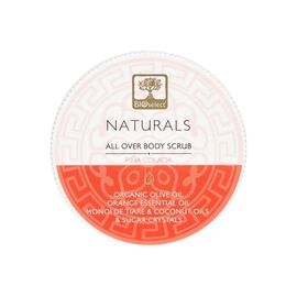 Bioselect naturals πήλινγκ σώματος pina colada με βιολογικό λάδι ελιάς, και αιθέριο έλαιο πορτοκαλιού.