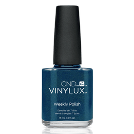 Βερνίκι Vinylux Peacock Plume 199 σε σκούρα μπλε/πετρόλ ελαφρά ιριδίζουσα απόχρωση.