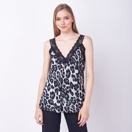 Λεοπάρ τοπ σε εβαζέ γραμμή. Δαντελένια τιράντα και ντεκολτέ. Πλάτη με ελαστικότητα.