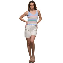 Πλεκτό τοπ με τιράντα και κόψιμο V στο λαιμό. Πολυχρωμία στην πλέξη. Ελαστική εφαρμογή.