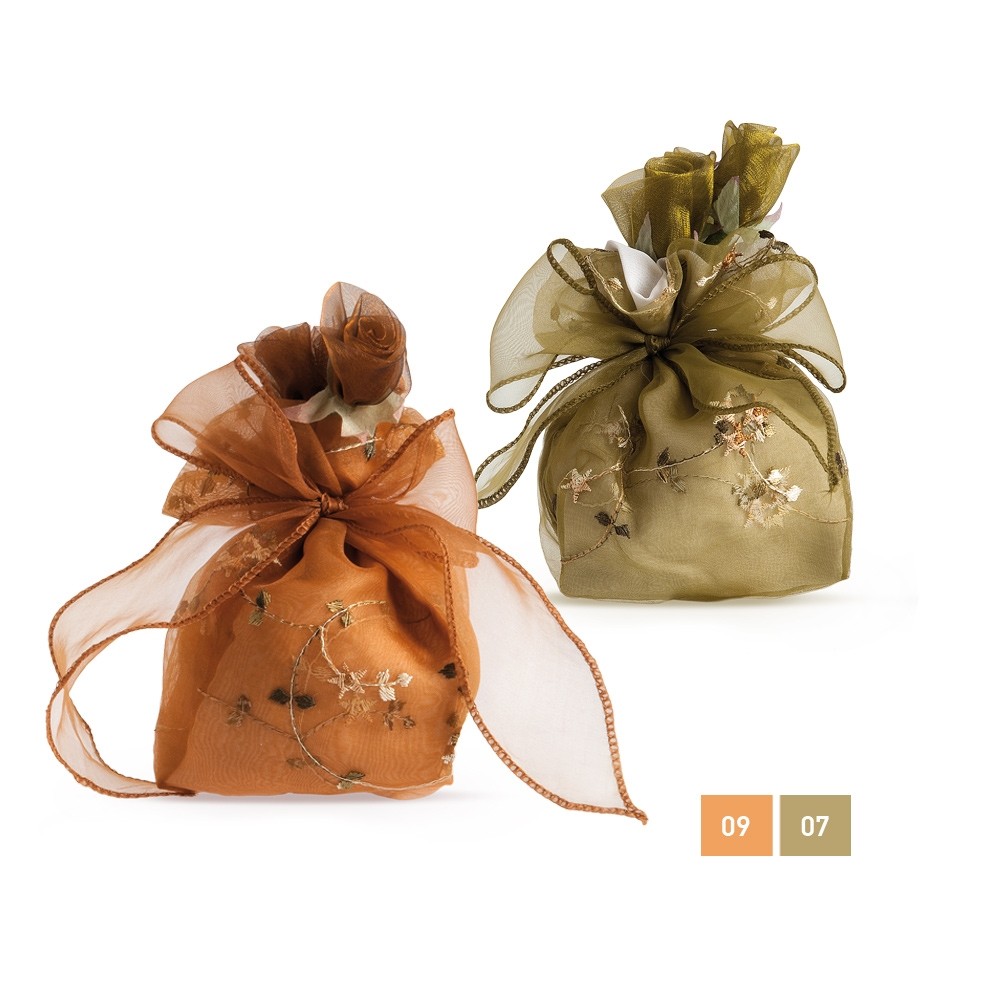 Πουγκί Οργάντζα με κεντημένο λουλούδι