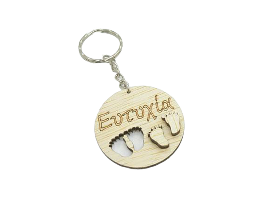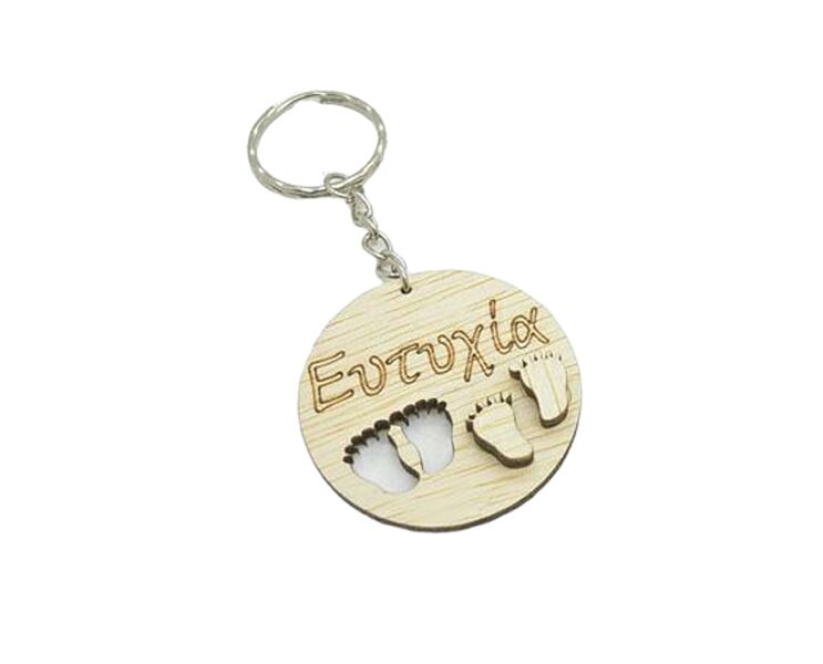 Ξύλινο Μπρελόκ ευχές πατουσάκια (611742)