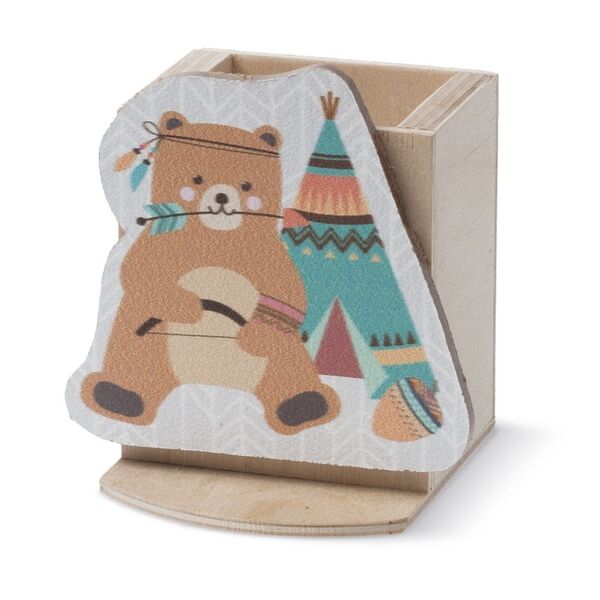 Ξύλινη μολυβοθήκη αρκουδάκι ethnic