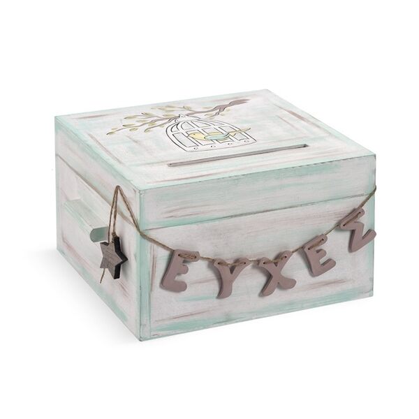 Ξύλινο κουτί ευχών βάπτισης κλουβάκι