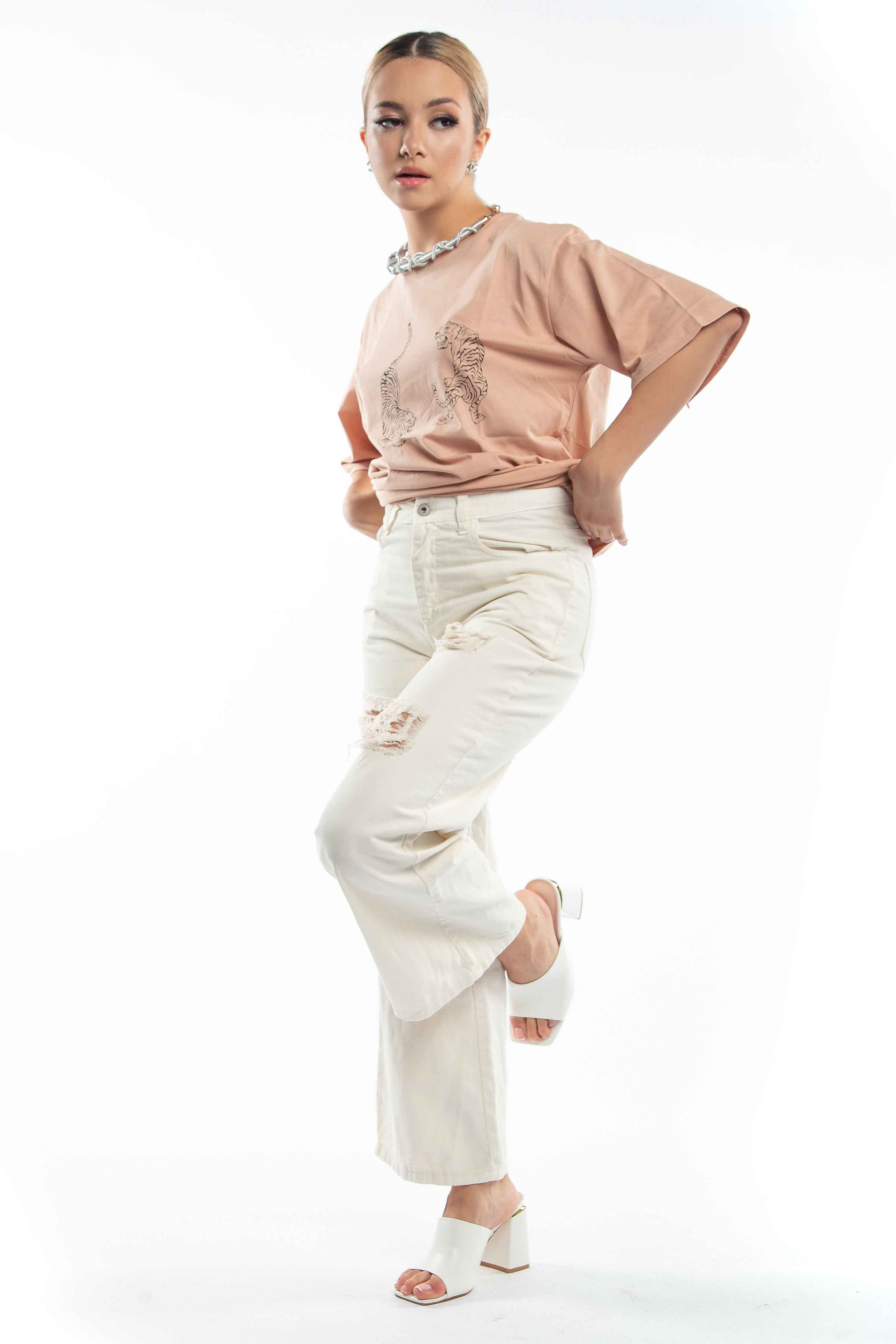 Το μοντέλο έχει ύψος 1,67cm,βάρος 50 κιλά και φοράει το νούμερο S.