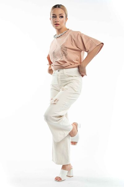 Jean καμπάνα με ξέφτι και σκισίματα.