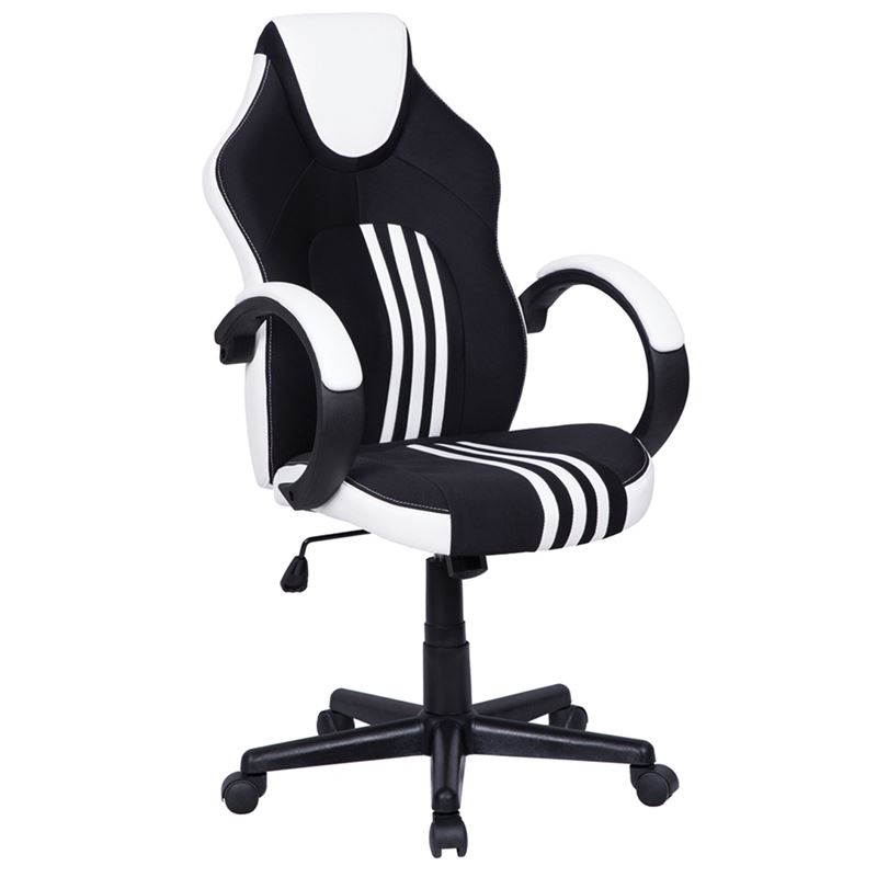 BF7400 Πολυθρόνα Διευθυντή Ύφασμα Μαύρο, PU Λευκό-ΕΟ301,2-Ύφασμα/PVC - PU-1τμχ- 57x67x105/115cm