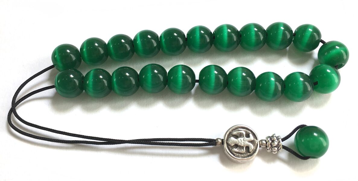 Κομπολόι από μάτι γάτας πράσινο 10mm