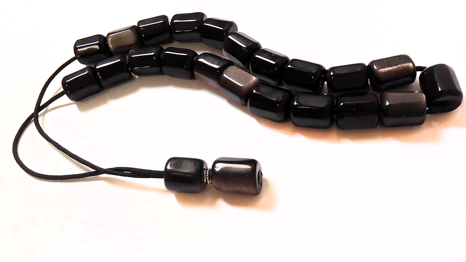 Κομπολόι από Οψιδιανό μαύρο-ασημί