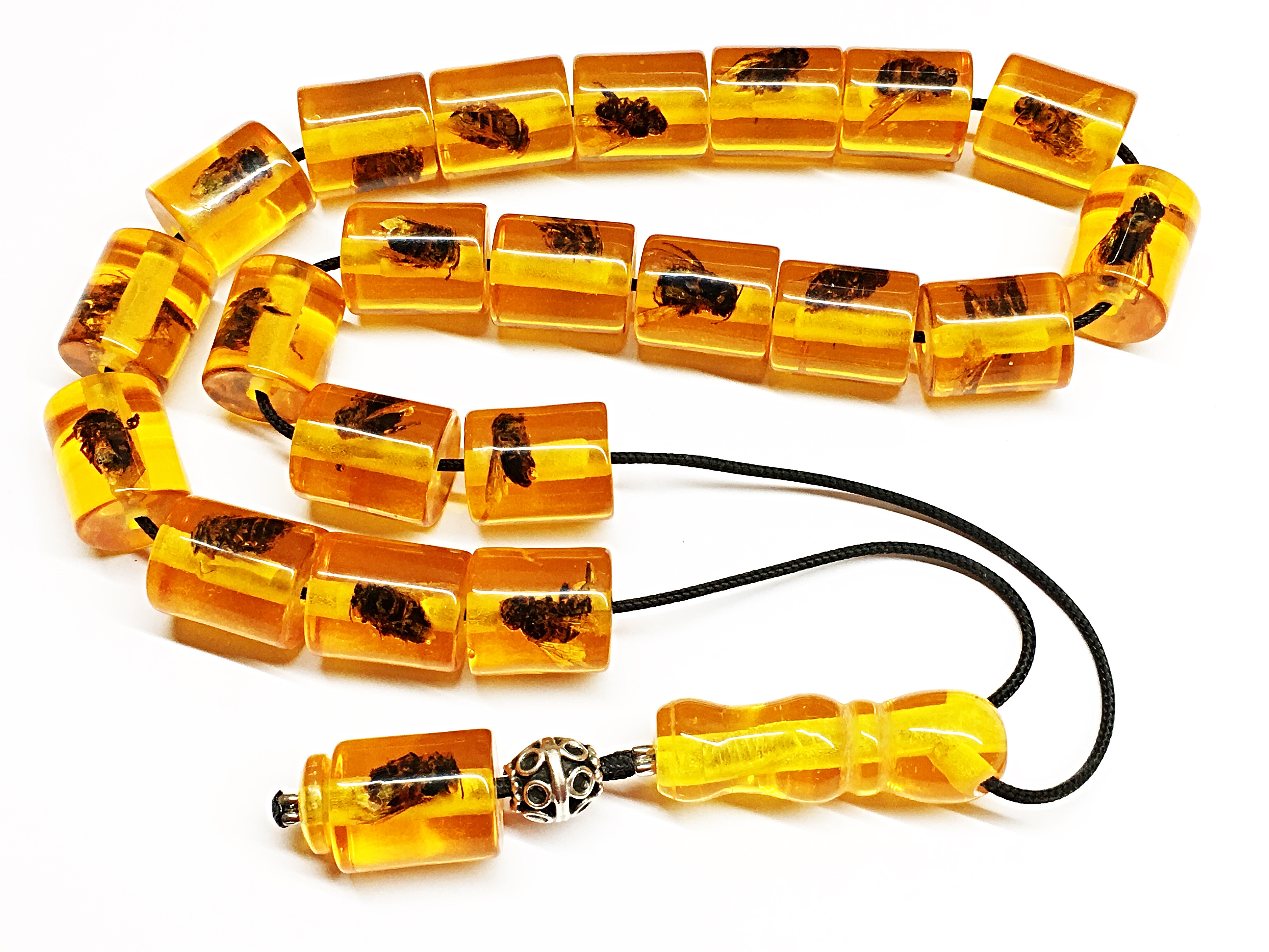 Κομπολόι από ρητίνη με εσώκλειστες μέλισσες