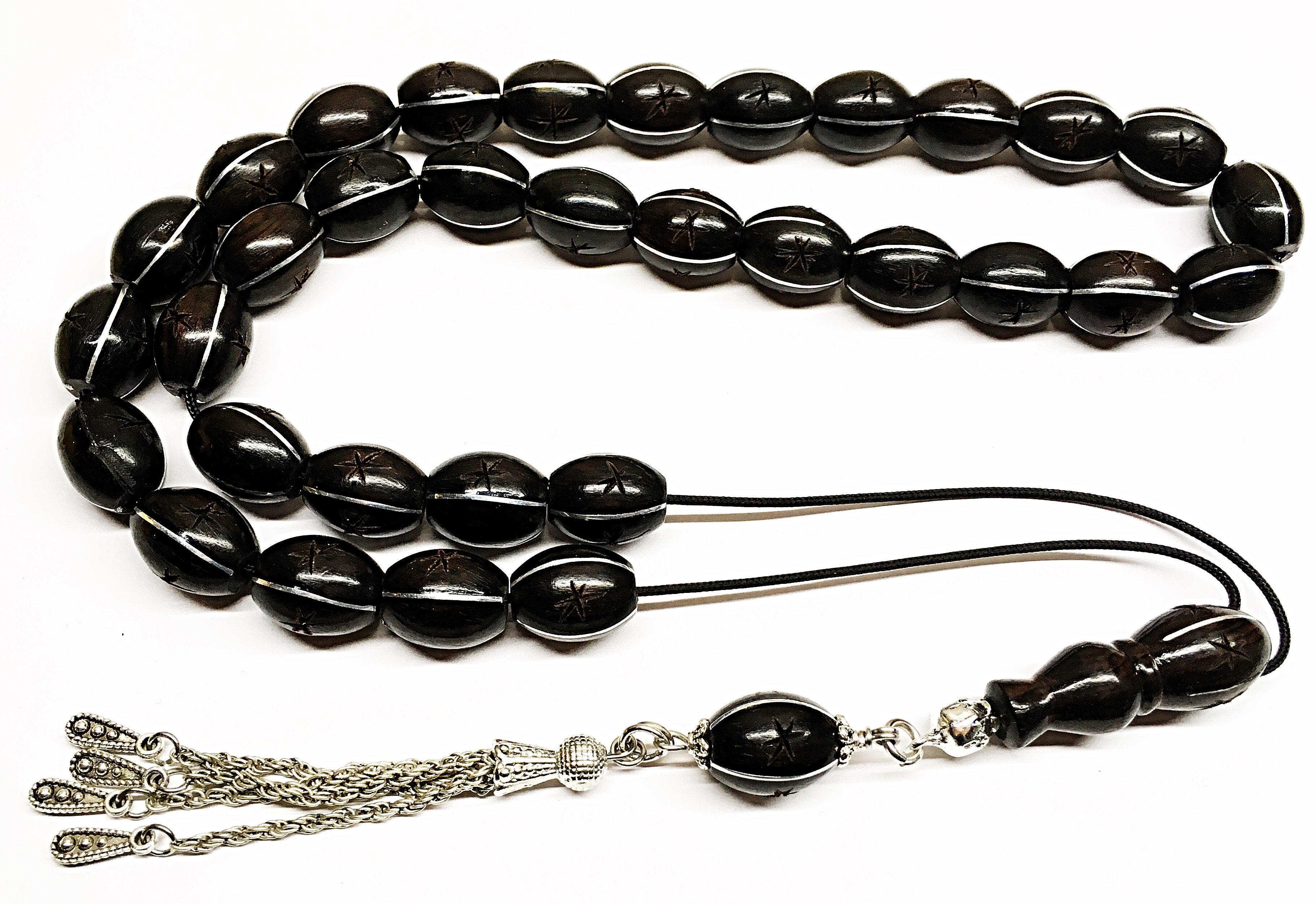 Κομπολόι 33άρι από Έβενο σκαλιστό με φιλετάκια από Ασήμι